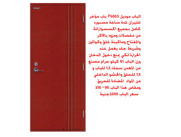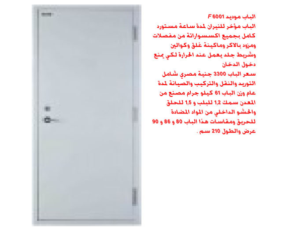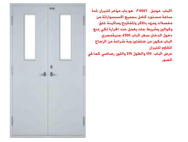 أبواب مقاومة النيران مع الأداء التشغيلي بدون التأثير على أي جانب منهما. هذا النوع من الأبواب يقلل انتشار النيران ويمكن من الخروج الآمن بالإضافة لأنه يقدم أعلى درجة من درجات التقسيم. هذه الأبواب مفضلة بشكل كبير في جميع أنواع المباني في الوقت الحالي، وهي تقدم حياة وحرية حركة آمنة.